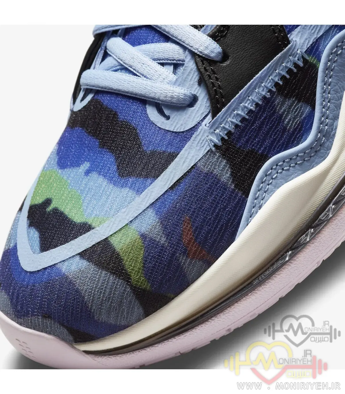 کفش بسکتبال نایک مدل Kyrie 8 Circle-آبی طرح اصلی، نسخهای الهامگرفته از مدل رسمی کایری اروینگ، یکی از تکنیکیترین و سریعترین گاردهای NBA است.