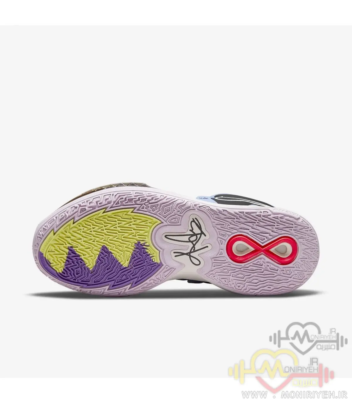 زیره کفش با الگوی چندجهته طراحی شده تا چسبندگی فوقالعادهای روی کف سالنهای بسکتبال ایجاد کند.