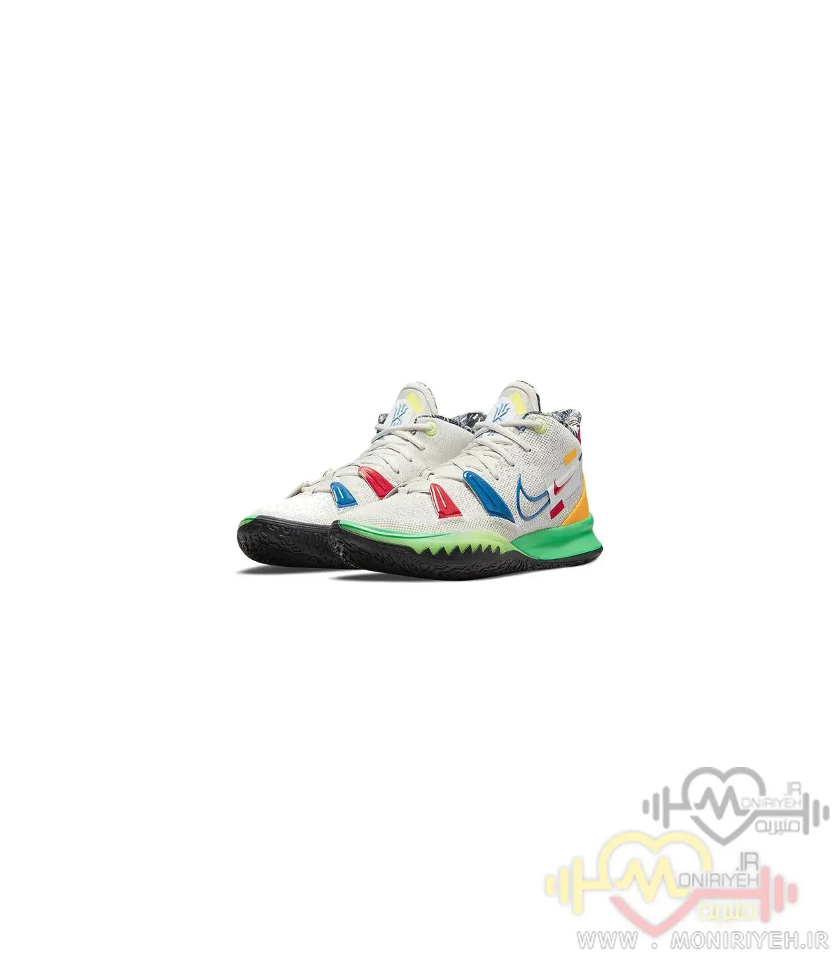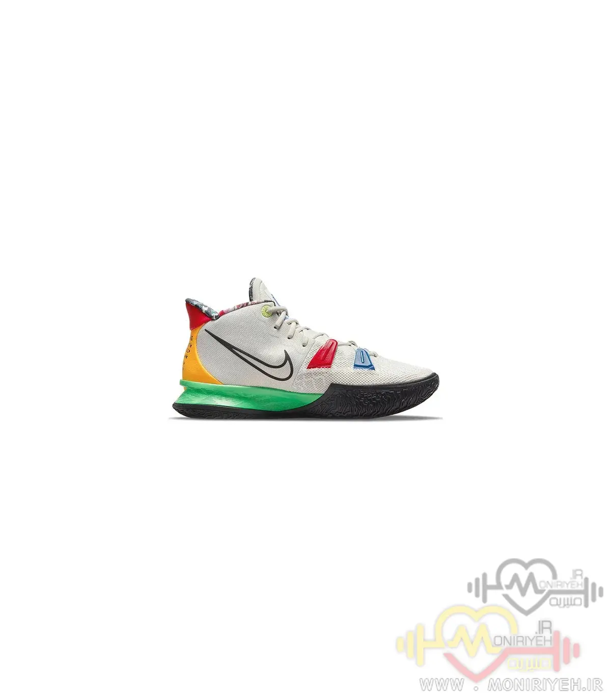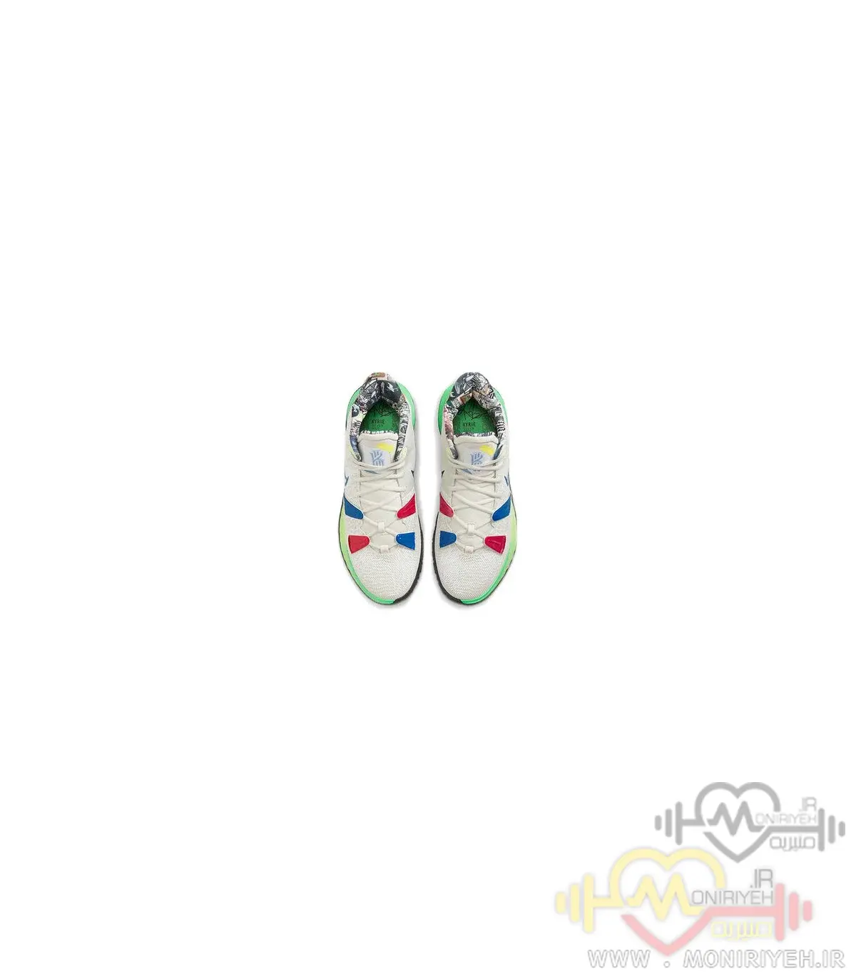 کفش بسکتبال نایک مدل Kyrie 8 Circle-سفید طرح اصلی، نسخهای الهامگرفته از مدل رسمی کایری اروینگ، یکی از تکنیکیترین و سریعترین گاردهای NBA است.