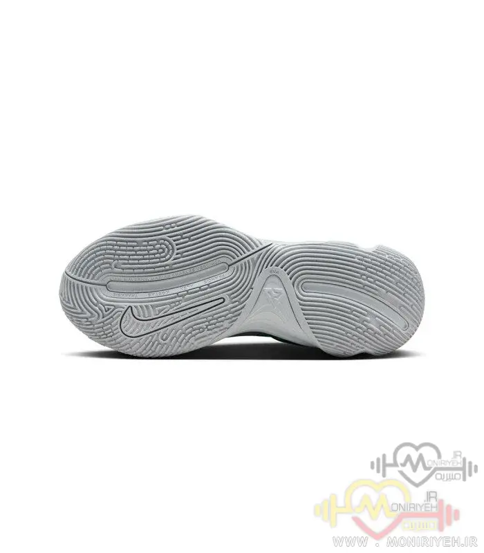 زیره کفش با الگوی چندجهته طراحی شده تا چسبندگی فوقالعادهای روی کف سالنهای بسکتبال ایجاد کند.