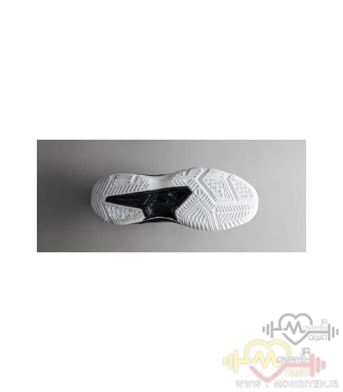 زیره کفش از جنس لاستیک مقاوم طراحی شده که چسبندگی خوبی روی کف سالنهای ورزشی ایجاد میکند.